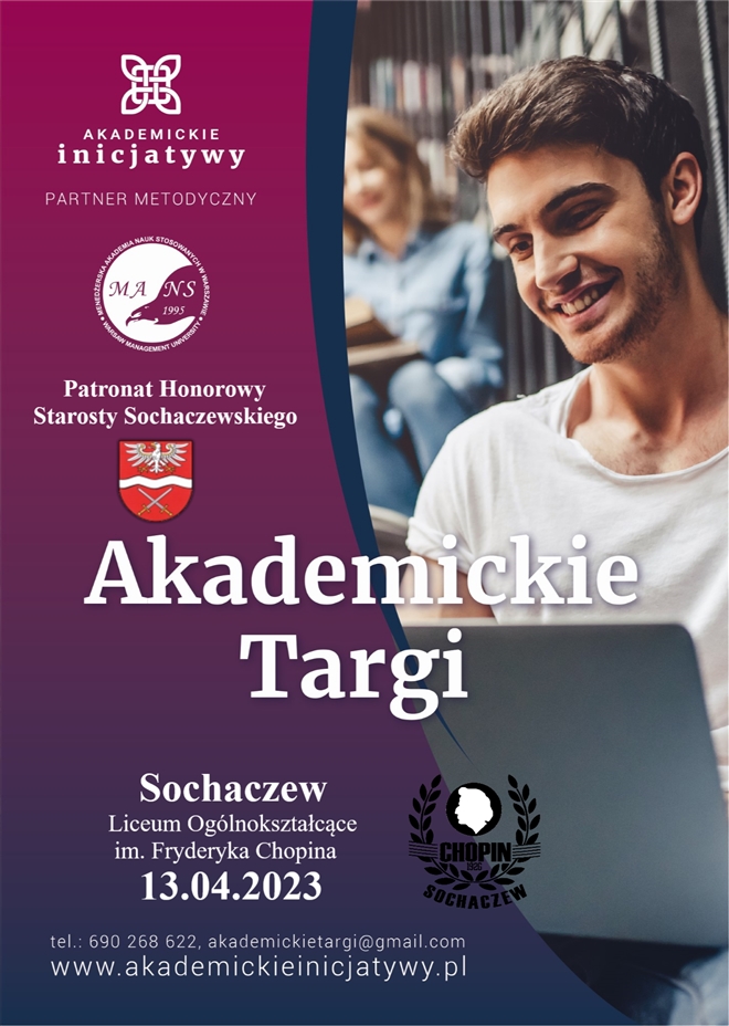 Już w najbliższy czwartek - Akademickie Targi w Sochaczewie – 13 kwietnia w Liceum Ogólnokształcącym im. Fryderyka Chopina przy ul. 15 Sierpnia 4 w godzinach 12:00-14:30 na sali gimnastycznej. &nbs...