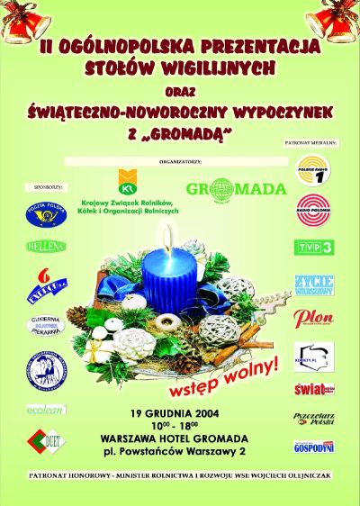 Zapraszamy Państwa do odwiedzenia stoiska powiatu sochaczewskiego podczas II Ogólnopolskiej Prezentacji Stołów Wigilijnych, która odbędzie się 19 grudnia w Hotelu Gromada w Warszawie w godzinach 10.00 – 18.00. Organizatorzy Krajowy Związek Rolników, Kółek i Organizacji Rolniczych oraz Ogólnokrajowa Spółdzielnia Turystyczna „Gromada” zaprosili na imprezę twórców ludowych, koła gospodyń wiejskich, a także samorządy niemal z całej Polski. Nie zabraknie degustacji potraw regionalnych, możliwości zakupu prezentów, stroików i ozdób choinkowych. Całość ubarwione będzie muzyką folklorystyczną na żywo.Starostwo Powiatowe w Sochaczewie wystawia się wspólnie z Warsztatami Terapii Zajęciowej „Jutrzenka”. Pracownicy Wydziału Promocji i Rozwoju zareklamują walory turystyczne Ziemi Sochaczewskiej, n...