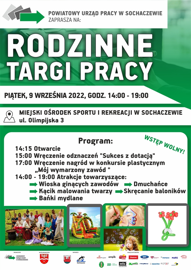 Powiatowy Urząd Pracy zaprasza na Rodzinne Targi Pracy. Odbędą się one w piątek, 9 września br. w godzinach 14.00 – 19.00 na terenie Miejskiego Ośrodka Sportu i Rekreacji w Sochaczewie.