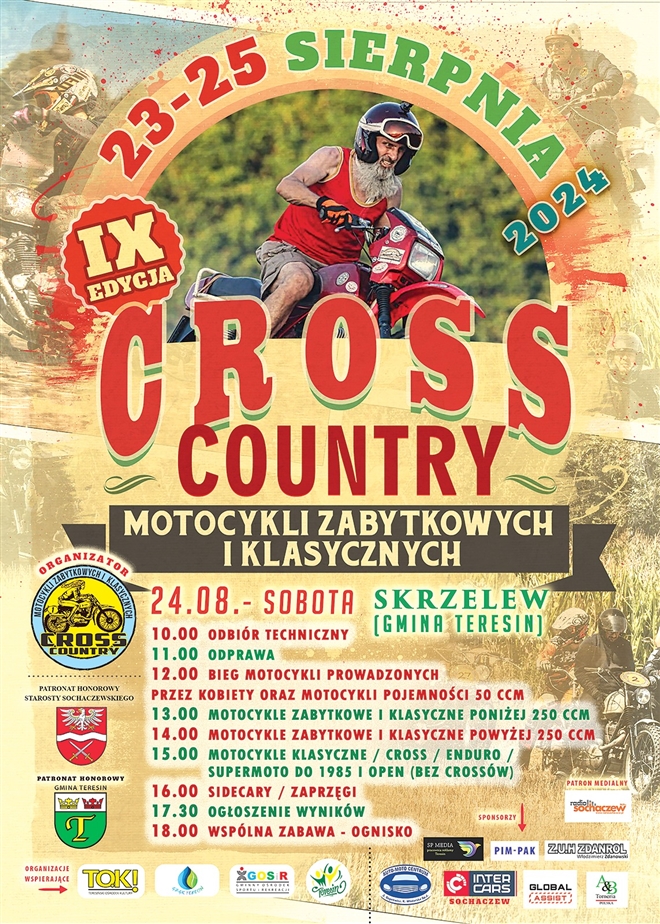 Zapraszamy serdecznie na IX Cross Country Motocykli Zabytkowych i Klasycznych do miejscowości Skrzelew, Gmina Teresin. Impreza w pełni ma charakter non profit. Jest wyjątkowa na skalę całej Polski. Promuje zabytki pol...