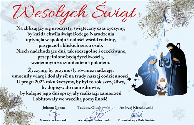Na zbliżający się uroczysty, świąteczny czas życzymy, by każda chwila świąt Bożego Narodzenia upłynęła w spokoju i radości wśród rodziny, przyjaciół i bliskich sercu osób. Niech na...