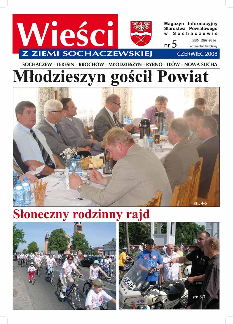 Już jutro – 10. czerwca, wraz z wydaniem „Ziemi Sochaczewskiej” otrzymają Państwo piąty numer bezpłatnego magazynu „Wieści z Ziemi Sochaczewskiej”. W numerze m.in. obszerny fotoreportaż z IX Rajdu Rodzinnego po Powiecie Sochaczewskim im. Tadeusz Krawczyka, relacja z wyjazdowej sesji Rady Powiatu. Przedstawiamy też dyrektor Powiatowego Centrum Pomocy Rodzinie – Barbarę Bogiel, informujemy o działaniach Powiatowego Zarządu Dróg. W ramach poradnika petenta piszemy o sprawach, jakie możemy załatwić w Wydziale Architektury i Budownictwa Starostwa Powiatowego. Wywiadu do biuletynu udzielił nam tym razem wicestarosta, przewodniczący Rady Społecznej ZOZ Szpitala Powiatowego – Piotr Osiecki. Ponadto, magazyn trafi do Urzędów Gmin, ośrodków i instytucji na terenie całego powiatu. Zapraszamy już dziś do lektury.
