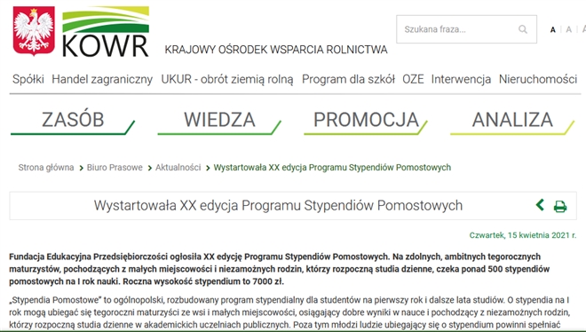 Fundacja Edukacyjna Przedsiębiorczości ogłosiła XX edycję Programu Stypendiów Pomostowych. Na zdolnych, ambitnych tegorocznych maturzystów, pochodzących z małych miejscowości i niezamożnych rodzin, kt&oa...