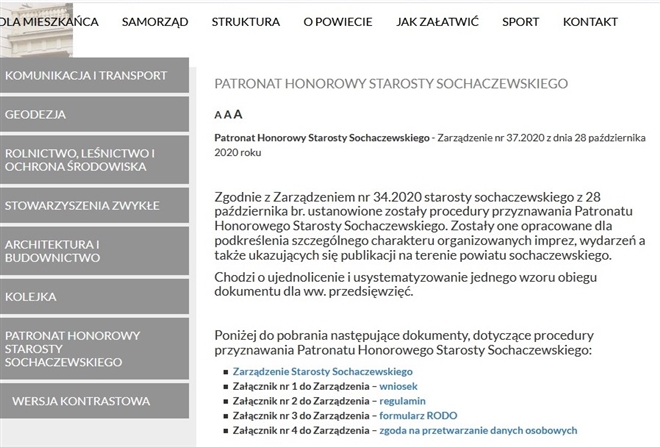 Zgodnie z Zarządzeniem starosty sochaczewskiego z października ub.r. ustanowione zostały procedury przyznawania Patronatu Honorowego Starosty Sochaczewskiego. Chodzi o ujednolicenie i usystematyzowanie jednego wzoru o...