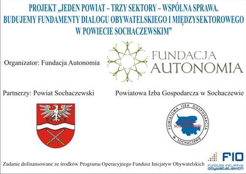 W najbliższą środę, 23 września, odbędzie się konferencja inaugurująca realizację projektu „Jeden powiat – trzy sektory – wspólna sprawa. Budujemy fundamenty dialogu obywatelskiego i międzysektorowego w Powiecie Sochaczewskim”. Organizator projektu, Fundacja Autonomia wraz z partnerami, Samorządem Powiatu Sochaczewskiego i Powiatową Izbą Gospodarczą w Sochaczewie przypominają wszystkim zaproszonym na środową konferencję o konieczności potwierdzenia uczestnictwa. Formularze zgłoszeniowe należy przesyłać faxem na numer 046 864 18 38 bądź emailem na adres: fundacja@fundacjaautonomia.org do dnia 21 września 2009 r. Formularz zgłoszeniowy w wersji elektronicznej można pobrać ze strony internetowej Samorządu Powiatu Sochaczewskiego www.powiat.sochaczew.pl zakładka „Jeden powiat – trzy sektory – wspólna spra...