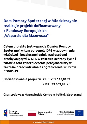 Dom Pomocy Społecznej w Młodzieszynie przy dużym zaangażowaniu Starostwa Powiatowego w Sochaczewie reprezentowanego przez starostę Jolantę Gonta, wicestarostę Tadeusza Głuchowskiego, skarbnik Teresę Pawelak oraz Irene...