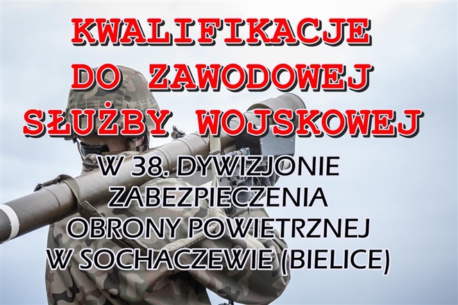 Dywizjon Zabezpieczenia Obrony Powietrznej w Bielicach w poniedziałek, 30 listopada br. od godziny 7.30 będzie prowadzić kwalifikacje do zawodowej służby wojskowej dla korpusu podoficerów i szeregowych zawod...