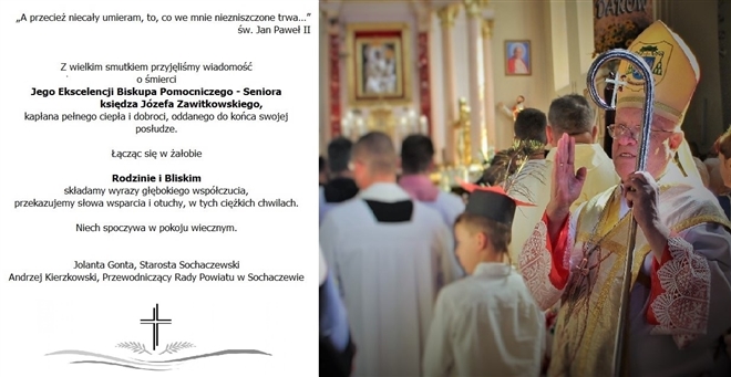 Z wielkim smutkiem przyjęliśmy wiadomość o śmierci Jego Ekscelencji Biskupa Pomocniczego - Seniora księdza Józefa Zawitkowskiego, kapłana pełnego ciepła i dobroci, oddanego do końca...
