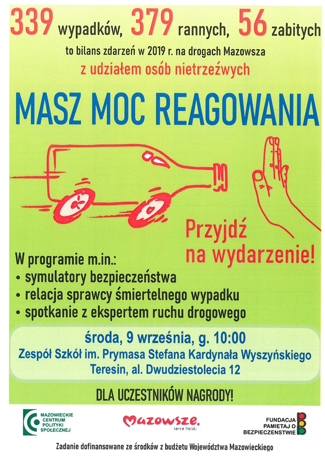 Zespół Szkół im. Stefana Kardynała Wyszyńskiego w Teresinie serdecznie zaprasza na bardzo ciekawe wydarzenie pod hasłem „MASZ MOC REAGOWANIA”. Odbędzie się ono w środę, 9 września w siedzibie...