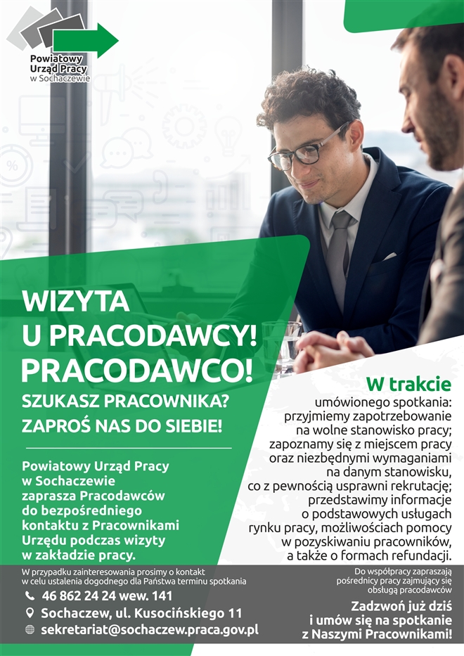 Pracodawco potrzebujesz pracownika! Powiatowy Urząd Pracy w Sochaczewie zachęca do spotkania z Pracownikiem Urzędu. Umów u siebie w firmie spotkanie z Pracownikiem Urzędu Pracy w Sochaczewie‼‼‼ W trakc...