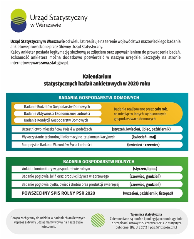 Badania ankietowe realizowane przez Urząd Statystyczny w Warszawie mają charakter reprezentacyjny, co oznacza, że udział w nich biorą wylosowane gospodarstwa domowe lub rolne. Wyniki badań ankietowych wykorzystywane s...