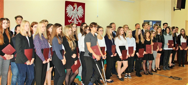 Wręczenie stypendiów uczniom za wyniki w nauce i wybitne osiągnięcia w II semestrze 2018/2019 roku szkolnego, złożenie ślubowania i odebranie awansów zawodowych na stopień nauczyciela mianowanego oraz pr...