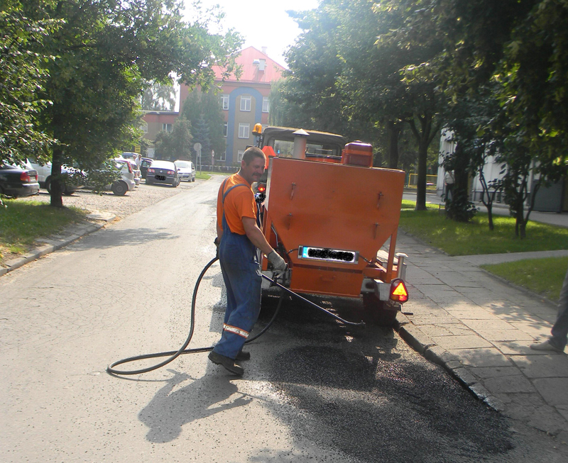 Dzięki sprzyjającym warunkom, przepięknej pogodzie Powiatowy Zarząd Dróg sukcesywnie dba o stan naszych dróg powiatowych. W przedostatnim tygodniu lipca br. trwały m.in. remonty naprawcze na ulicy Ziemowita w Sochaczewie. Do prac tych wykorzystywana jest metoda powierzchniowego utrwalania, przy użyciu grysów i emulsji za pomocą Remontera, który od niedawna jest w posiadaniu PZD Sochaczew. Jest to maszyna, używana do naprawy spękań i uzupełniania mniejszych ubytków nawierzchni asfaltowych polegająca na uzupełnianiu ich poprzez zalanie ich gorącą mieszanką grysu i emulsji wylewaną i rozprowadzaną na newralgiczne miejsca. Roboty te służą zdecydowanie poprawie stanu nawierzchni asfaltowej oraz bezpieczeństwa poruszania się po drogach.
