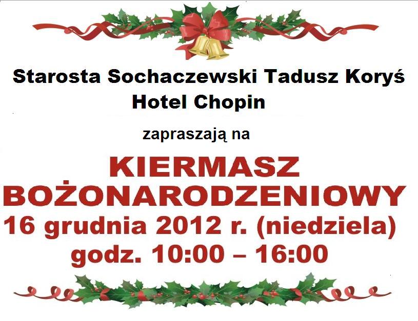 W niedzielę 16 grudnia, w tym wyjątkowym przedświątecznym klimacie niezależnie od pogody zapraszamy wszystkich bardzo serdecznie do odwiedzenia sali balowej Hotelu Chopin w Sochaczewie – tam bowiem czekać będzie dla Państwa niepowtarzalny kiermasz bożonarodzeniowy. „Boże Narodzenie na Mazowszu”.To pierwsza edycja kiermaszu, podczas której zaprezentujemy bożonarodzeniowe walory Mazowsza i Ziemi Sochaczewskiej.Swoją obecność zapowiedziało już ponad 30 wystawców. Zapraszamy w godzinach między 10.00 a 16.00. W ofercie będą:- stoiska z ozdobami choinkowymi, - stoiska ze stroikami świątecznymi i innym bożonarodzeniowymi dekoracjami, - rękodzieło artystyczne, - wyroby z filcu i ozdoby koronkowe,- wyroby z najlepszych pasiek pszczelich,- soki owocowe.- arcydzieła wykonane przez uczniów Zespołu Szkół w Erminowie, - wyroby podopiecznych Warszta...