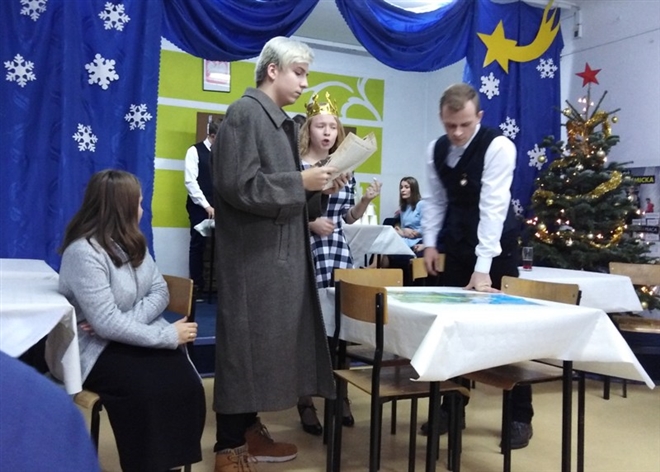 Utalentowani artystycznie uczniowie reprezentujący Liceum Ogólnokształcące i Technikum w Zespole Szkół im. Jarosława Iwaszkiewicza w Sochaczewie zaprezentowali szkolnej społeczności Jasełka, w kt&oa...