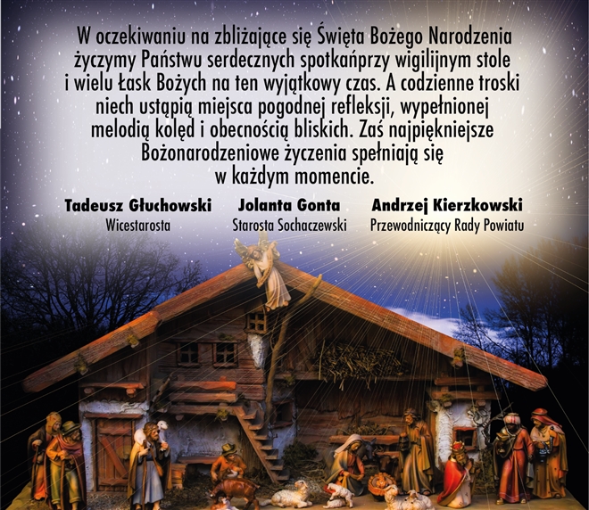 W oczekiwaniu na zbliżające się Święta Bożego Narodzenia życzymy Państwu serdecznych spotkań przy wigilijnym stole i wielu Łask Bożych na ten wyjątkowy czas. A codzienne troski niech ustąpią miejsca pogodnej ref...