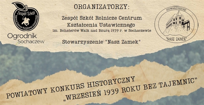 Zapraszamy uczniów szkół podstawowych do udziału w VII edycji Powiatowego Konkursu „Wrzesień 1939 roku bez tajemnic”. Organizatorami są Zespół Szkół Rolnicze Centrum Kształcenia...