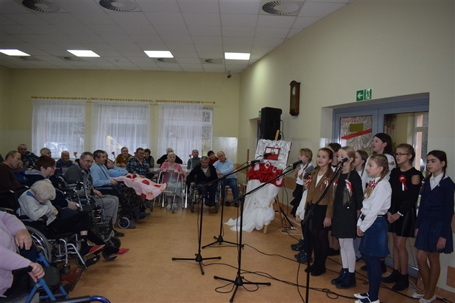 Mieszkańcy Domu Pomocy Społecznej w Młodzieszynie mieli przyjemność wysłuchać przepięknego koncertu dzieci i młodzieży ze Studia Piosenki działającego przy Gminnej Bibliotece Publicznej w Rybnie pod kierunkiem pani Jo...
