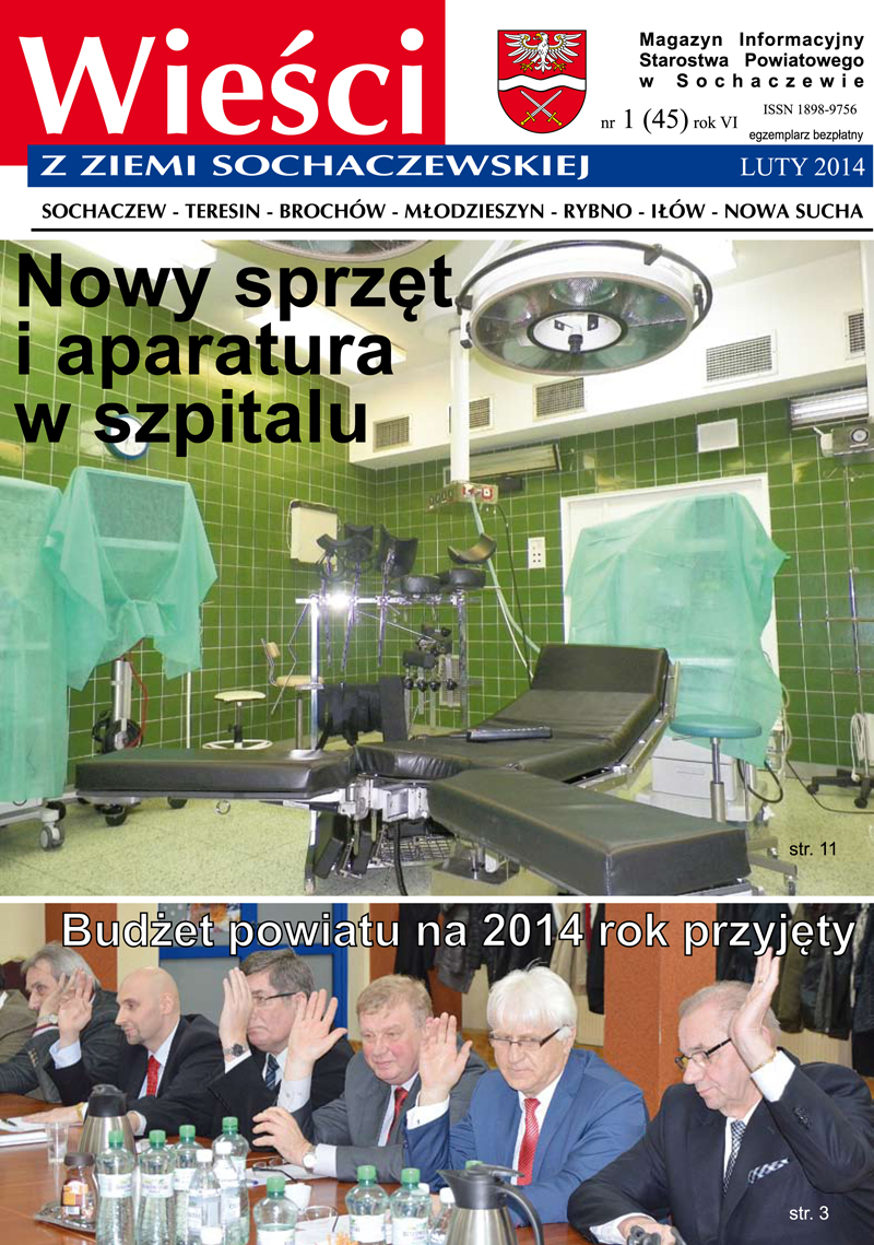 Ukazał się już 45. numer magazynu informacyjnego Starostwa Powiatowego „Wieści z Ziemi Sochaczewskiej”. Tradycyjnie poruszamy kwestie najważniejsze dla mieszkańców. Strony biuletynu wypełniają bowiem bieżące tematy z pracy urzędu, jego wydziałów i jednostek mu podległych. Przedstawiamy m.in. relacje z sesji Rady Powiatu – budżetowej, i nadzwyczajnej poświęconej sprawom funkcjonowania Domu Pomocy Społecznej w Młodzieszynie. Przeczytają Państwo także w tej sprawie informację Zarządu Powiatu oraz oświadczenie dyrekcji placówki.Ponadto, informujemy mieszkańców powiatu o planowanych inwestycjach drogowych i nie tylko. Przeczytają Państwo także o tym, w jaki sposób szkoły ponadgimnazjalne chcą uatrakcyjnić ofertę edukacyjną, przeznaczając na ten cel prawie 6,5 miliona złotych.Piszemy także o ...