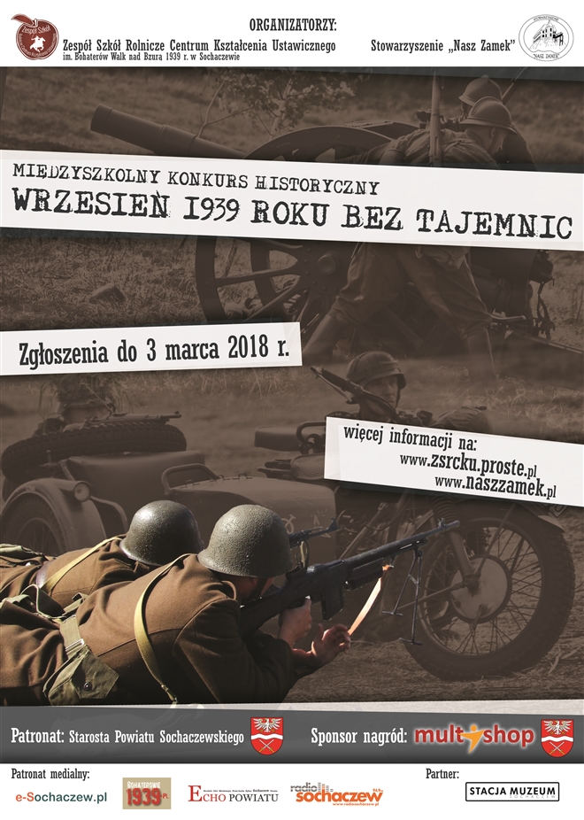 Pod patronatem Jolanty Gonta starosty sochaczewskiego 23 marcu b.r. odbędzie się już po raz drugi międzyszkolny konkurs historyczny „Wrzesień 1939 roku bez Tajemnic”. Jest on skierowany do uczni&oacut...