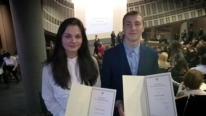 W Warszawie wręczono stypendia Prezesa Rady Ministrów dla uczniów województwa Mazowieckiego. Z Ogrodnika stypendia otrzymali: Justyna Urbańska z Liceum oraz Krystian Czubak z Technikum. Gratulujemy!