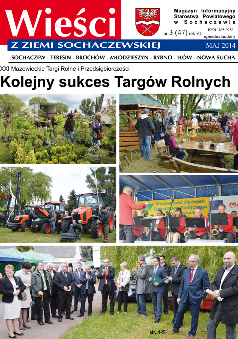 Ukazał się najnowszy numer bezpłatnego magazynu informacyjnego Starostwa Powiatowego „Wieści z Ziemi Sochaczewskiej”.Zachęcamy do lektury biuletynu, w którym znajdą Państwo m.in. obszerną relację z Mazowieckich Targów Rolnych i Przedsiębiorczości, a także konkursów na logo rajdu rowerowego „Od Juniora do Seniora” oraz fotograficznego. „Najpiękniejsza jest moja mała Ojczyzna” – prezentujemy zwycięskie logo oraz nagrodzone zdjęcia.Wracamy do tematu praw jazdy, które zostały wydane na podstawie orzeczeń lekarskich wydawanych przez jednego z sochaczewskich lekarzy. Informujemy mieszkańców o inwestycjach drogowych oraz remontach w sochaczewskim Szpitalu Powiatowym.Szczególnie zachęcamy do przeczytania wywiadu z Tadeuszem Korysiem, starostą sochaczewskim. Rozmawiamy m.in. o udzielonym Zarządowi Powiatu absolutorium, a także wyz...