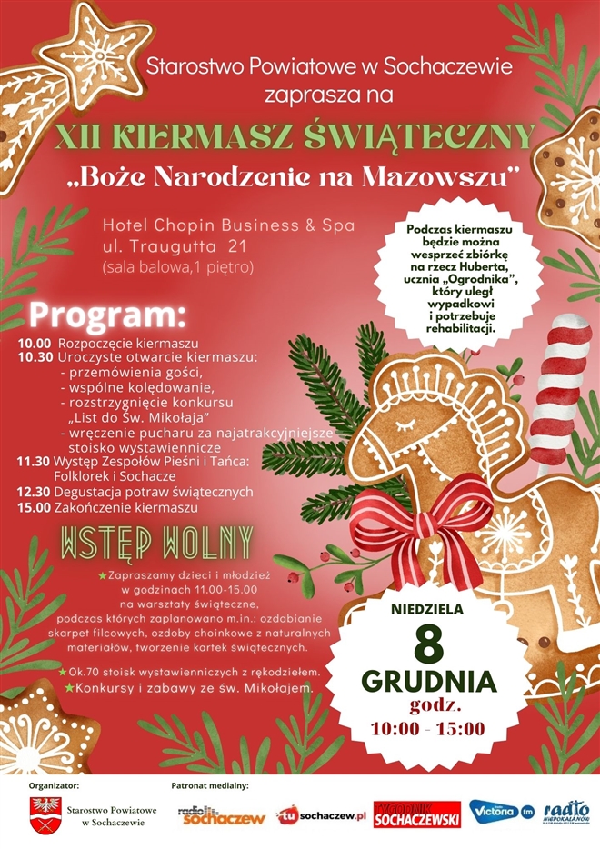 KIERMASZ ŚWIĄTECZNY "BOŻE NARODZENIE NA MAZOWSZU" Już w niedzielę, 8 grudnia zapraszamy na największy w powiecie i okolicy kiermasz świąteczny "Boże Narodzenie na Mazowszu". Jego XII edycja odbędzie się...