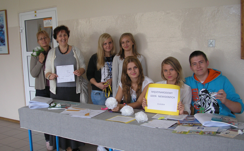 Od 1964 roku w dniu 15 października na całym świecie obchodzony jest Międzynarodowy Dzień Niewidomych. W Polsce ten dzień świętowaliśmy po raz pierwszy w 1993 roku. Pomimo, że święto na trwałe wpisało się do kalendarza, nie każdy o nim wie. Dlatego wszystkim uczniom chcieliśmy zwrócić uwagę na tę szczególną datę. Podczas dużej przerwy wolontariusze z „Klubu Ośmiu” naszej szkoły prezentowali książki pisane alfabetem L. Braille’a, ulotki dotyczące pomocy osobom niewidomym, czasopisma przeznaczone specjalnie dla niewidomych. Największym wyzwaniem dla młodzieży był konkurs czytania alfabetem Braille’a. Przystępujący do konkursu musieli odczytać cytat napisany tym alfabetem. Dzięki uprzejmości Wydziału Promocji Starostwa Powiatowego finaliści otrzymali interesujące nagrody. Pierws...