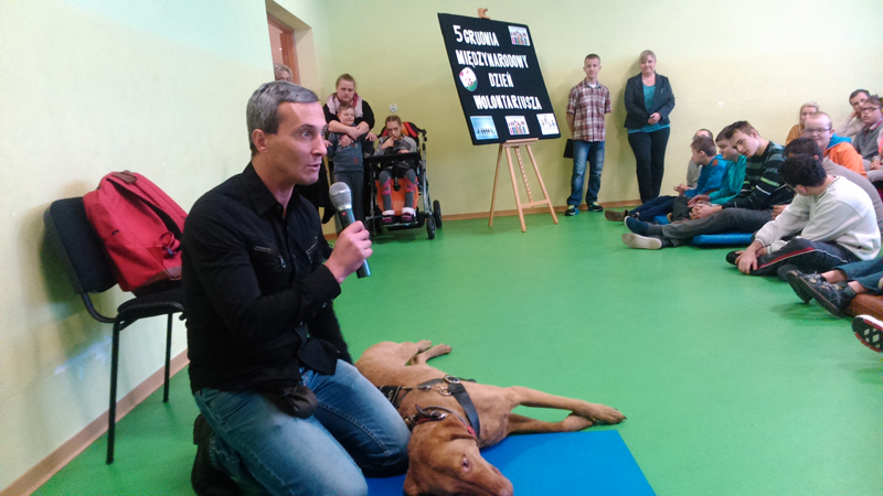 Z tej okazji wolontariusze z naszej szkoły zorganizowali 5 grudnia spotkanie z panem Sebastianem Grzywaczem, który odwiedził nas ze swoim psem przewodnikiem Rolkiem.Pan Sebastian jest osobą niewidomą. Stracił wzrok sześć lat temu. Nie przeszkadza mu to jednak w aktywnym życiu. Jedną z jego pasji jest wyczynowe bieganie. Wychowuje samodzielnie czteroletniego syna. Pracuje jako wolontariusz w przedszkolu. Jest również pracownikiem Fundacji Inicjatyw Psycho-Edukacyjnych Po – Mocni.Fundacja ta wraz z Ośrodkiem Diagnoz i Szkoleń Psychologicznych ODIS współprowadzi od niedawna Niepubliczny Punkt Przedszkolny dla dzieci z autyzmem.Nasz gość opowiadał nam jak można żyć i funkcjonować z pewnymi ograniczeniami. Pokazywał jak radzą sobie w życiu ludzie niewidomi. Wielkim oparciem i pomocą jest dla niego pies przewodnik Rolek.Pan Grzywacz uświadomił nam, że osoba ...