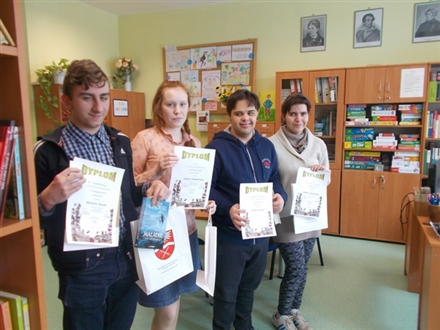 Czworo naszych uczniów reprezentowało Zespół Szkół w Erminowie na międzyszkolnych eliminacjach XIV edycji Powiatowego Konkursu TĘ KSIĄŻKĘ WARTO PRZECZYTAĆ. Prezentacje książek polecanych przez dzi...