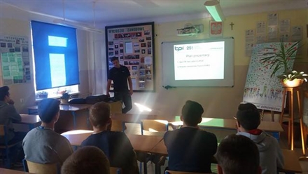 W minionym miesiącu uczniowie klas Technikum Geodezyjnego w sochaczewskim ZSR CKU uczestniczyli w spotkaniach z przedstawicielem firmy Topcon - Jerzym Pacześniakiem, który zaprezentował sprzęt geodezyjny oraz n...