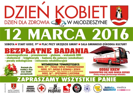 Wójt gminy Młodzieszyn Monika Pietrzyk-Połubińska zaprasza wszystkie Panie 12 marca w sobotę, od godz. 9.00 do Młodzieszyna (ul. Wyszogrodzka 25 – teren przy Urzędzie Gminy i sala Gminnego Ośrodka Kultur...
