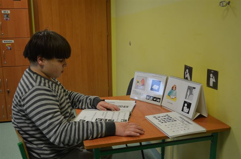 Nie od dziś wiadomo, iż komunikacja jest najważniejszą sferą funkcjonowania. Stąd też w Zespole Szkół Specjalnych ten obszar edukacji jest niezwykle istotny w pracy z uczniami. – Od 2007 roku październik jest międzynarodowym miesiącem komunikacji alternatywnej i wspomagającej (AAC). Informowanie i propagowanie wiedzy o AAC przebiega w tym roku pod hasłem: „Przełamujemy milczenie” – informują nauczyciele Wiesława Rosińska i Kamila Wójtowicz z ZSS Erminów. Jak wyjaśniają, użytkownikami AAC są dzieci, które z różnych powodów nie mogą posługiwać się mową dźwiękową lub mowa jest tak zaburzona, że nie jest zrozumiała dla otoczenia. – Wtedy używają znaków graficznych (piktogramów, obrazków, symboli), gestów, komunikatorów, tabletów. Dzięki temu mogą dokonywać wyborów, podejmować decyzje, pytać, odpowiadać, wyrażać myśli, własną wolę, uczucia i bycie sprawcą – mówią nauczycielki. W Zespole Szkół Specjalnych w Erminowie, do pracy z dzieckiem zakwalifikowanym do terapii AAC, wykorzystywane są osobiste książki do komunikacji, tablice i wiele, wiele innych pomocy, głównie samodzielnie wykonanych dla każdego ucznia, by ułatwić mu komunikowanie się i naukę.