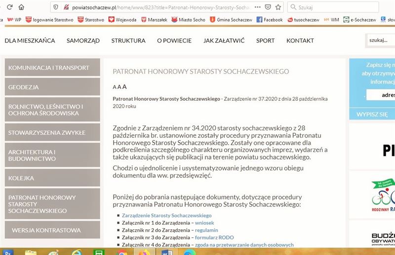 W ciągu roku kalendarzowego wiele placówek, organizacji czy stowarzyszeń zwraca się z pisemną prośbą do urzędu Starostwa Powiatowego w Sochaczewie o objęcie patronatem przez starostę jakiegoś wydarzenia czy przedsięwzięcia. Wzorem innych samorządów ta kwestia i w sochaczewskim urzędzie została uregulowana a tak naprawdę wszystkie zasady zostały zebrane w jeden przejrzysty i prosty do wypełnienia wniosek. Ustanowiony regulamin zakłada zasady i procedury, które obowiązują przy przyznawaniu patronatu honorowego starosty sochaczewskiego. Wskazano w nim m.in. terminy składania i rozpatrywania podania a także zobowiązania organizatora wydarzenia względem urzędu. Oczywiście, jak dotychczas udzielenie patronatu nie podlega żadnym opłatom. Starosta wzorem lat poprzednich nie udziela patronatu stronom oraz portalom internetowym. Podobnie jak w przypadku pomników czy tablic pamiątkowych nie obejmuje patronatu nad samą ideą oraz procesem realizacji, może natomiast zadecydować o objęciu patronatu nad uroczystością odsłonięcia gotowego pomnika czy tablicy pamiątkowej. Co istotne, w przypadku przedsięwzięć cyklicznych o patronat należy występować każdorazowo.