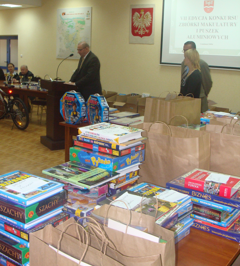 W zeszłorocznej edycji konkursu zebrano łącznie 95,5591,800 kg makulatury i 78,650 sztuk puszek aluminiowych, udział wzięło 28 placówek oświatowych z całego powiatu. Rekordziści zebrali indywidualnie 4150 kg makulatury i 9400 sztuk puszek aluminiowych. Jakie będą wyniki tegorocznego konkurs, dowiemy się już jutro o godz. 11.00.