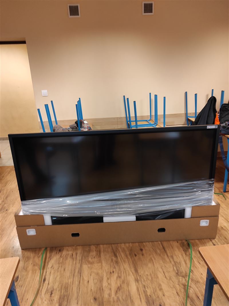 Właśnie zamontowano pierwsze trzy z sześciu zakupionych wielkoformatowych monitorów interaktywnych Returnstar IQ Touch o przekątnej ekranu 75” i rozdzielczości 4K. Do dyspozycji szkoły pozostaje też czternaście nowych, szybkich laptopów HP 255 G7 z dyskami SSD M2 256 GB, 8 GB RAM i systemem operacyjnym Windows 10 Pro. Wśród dokonanych zakupów są znalazły się również pomoce naukowe do nauczania języków obcych, ale i cyfrowy projektor cyfrowy. Wszystko po to, by nauka nie tylko stała na jeszcze wyższym poziomie, ale była przyjemna i komfortowa.