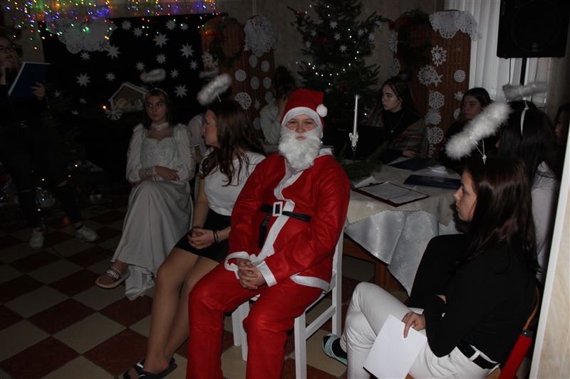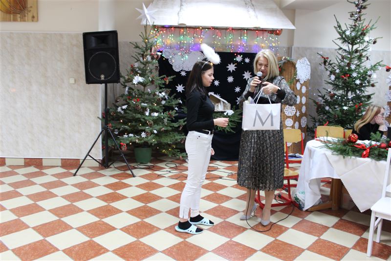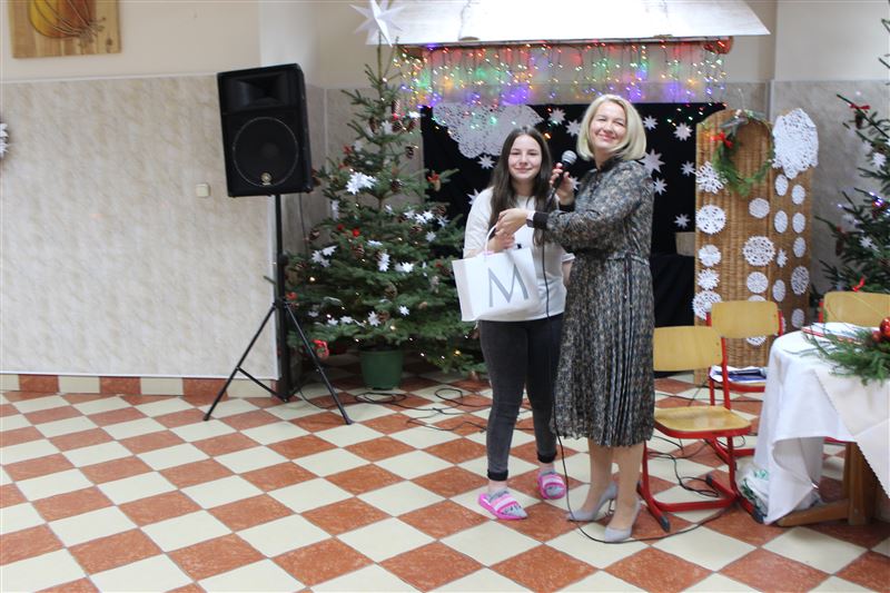 Symbolicznego przełamania opłatkiem dokonała dyrektor placówki - Agnieszka Ambroziak. Złożyła zebranym świąteczne życzenia, do których przyłączył się ksiądz, błogosławiąc wcześniej opłatek. Po tej wzniosłej i wzruszającej chwili wszyscy zasiedli do posiłku, który składał się z tradycyjnych wigilijnych potraw. W pięknej świątecznej scenerii przy brzmieniu kolęd przybył św. Mikołaj. Ku wielkiej uciesze dziewcząt wręczył im atrakcyjne zestawy kosmetyków i innych upominków przekazane przez firmę kosmetyczną Marion. Sponsorem było również Nadleśnictwo Łąck, które przekazało choinki. Pierwszym zaś gościem tego dnia była starosta powiatu Jolanta Gonta, która również przekazała wychowankom życzenia i czekolady.