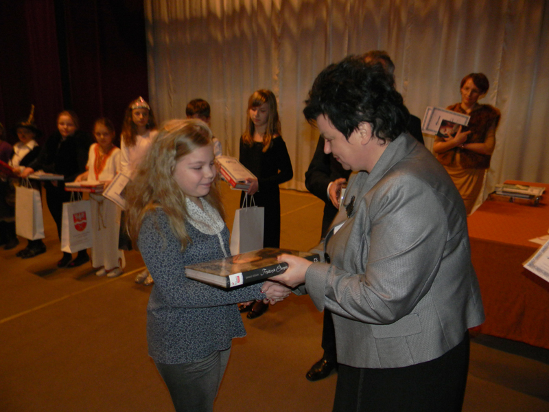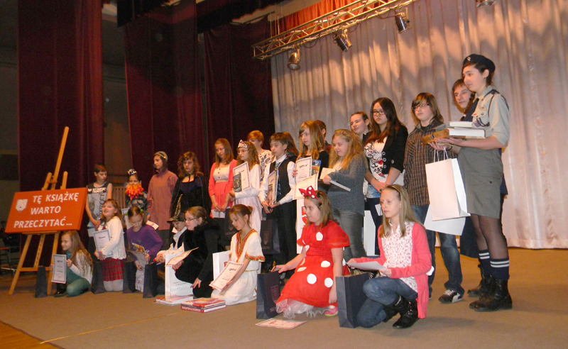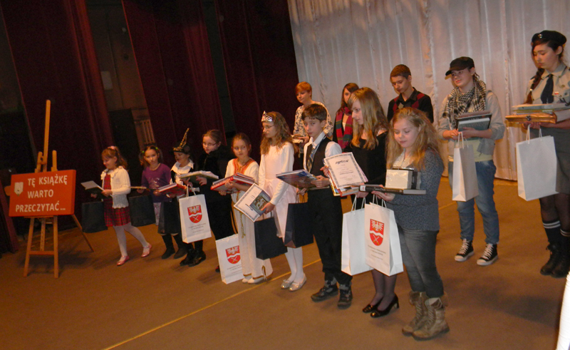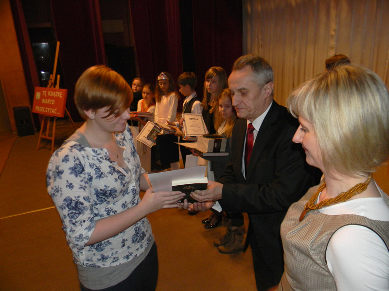 Każdy z uczestników nie pozostał bez nagrody choćby pocieszenia. Wszyscy otrzymali dyplomy i drobne upominki, natomiast laureaci wyróżnieni zostali nagrodami specjalnymi, ufundowanymi m.in. przez patrona imprezy starostę sochaczewskiego w skład których wchodziły przepiękne publikacje książkowe oraz upominki. W imieniu starosty, nagrody wręczał Bogusław Bęzel dyrektor Powiatowego Zespołu Edukacji oraz dla miejsc pierwszych przewodnicząca Rady Powiatu Halina Pędziejewska. Obecna była również pedagog Elżbieta Szczypińska, opiekunowie uczniów prezentujących, nauczyciele i uczniowie jako goście choć w bardzo małej frekwencji, a szkoda bo cel jaki przyświecał konkursowi to niewątpliwie zachęta do czytania książek, które w dobie komputerówczęsto bywają zapominane i odkładane na bok.
