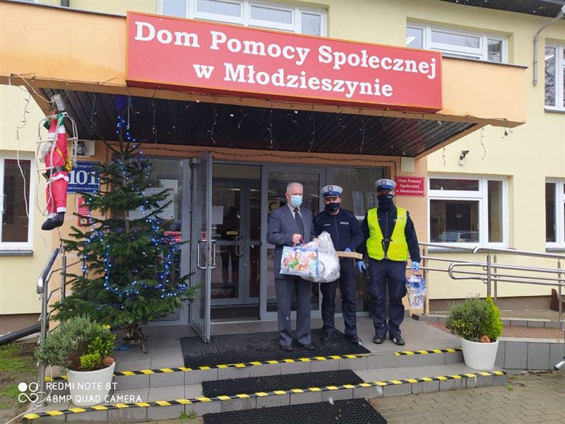 Zainteresowanie mieszkańców powiatu sochaczewskiego przerosło nasze najśmielsze oczekiwania. Choinka została kompletnie rozebrana z odblasków. Zebraliśmy ponad 400 masek i przyłbic. Zdecydowana większość masek została wczoraj przekazana na ręce dyrektora Domu Pomocy Społecznej w Młodzieszynie, Pana Konrada Jakubowskiego. Dodatkowo, z okazji zbliżającego się Dnia Babci i Dnia Dziadka, policjanci przekazali dla każdego pensjonariusza odblaski, które z pewnością wpłyną na poprawę widoczności i bezpieczeństwa na drodze.