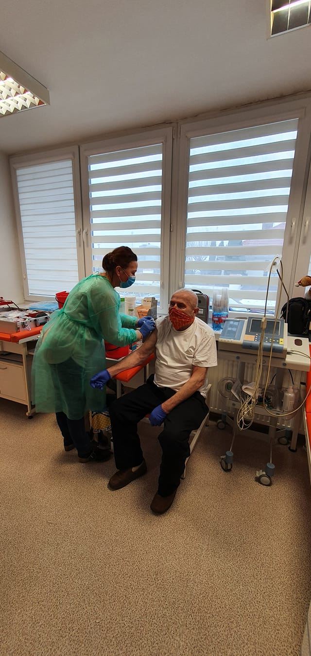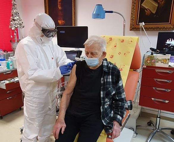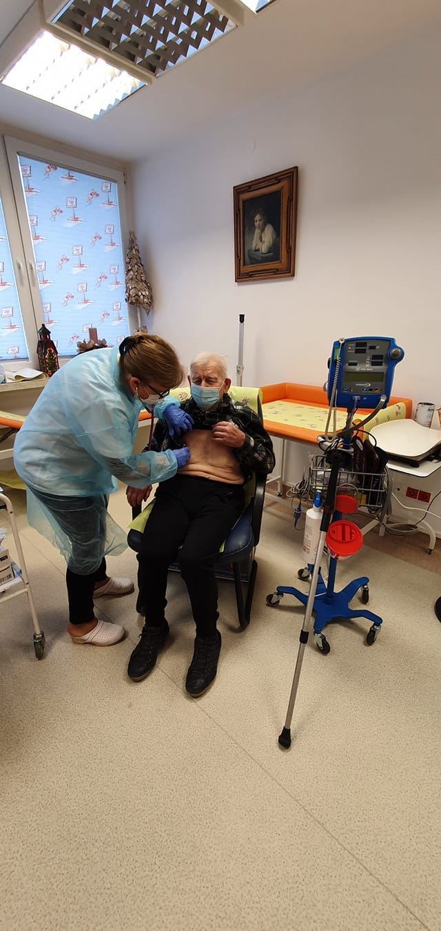W poniedziałek, 25 stycznia br. rozpoczęły się w całej Polsce szczepienia populacyjne przeciw COVID-19 dla osób powyżej 70 roku życia. Chyba pierwszym seniorem zaszczepionym w powiecie sochaczewskim, bo o godz. 10.30, okazał się 94-letni mieszkaniec Gminy Młodzieszyn pan Mieczysław Sobieraj zaszczepiony przez dr Jarosława Załuskiego. Pacjenci zaczęli zapisywać się na szczepienie już kilkanaście dni temu do swojej Przychodni Medycyny Rodzinnej w Młodzieszynie, gdzie w dniu dzisiejszym zostanie w sumie zaszczepionych 30 seniorów.