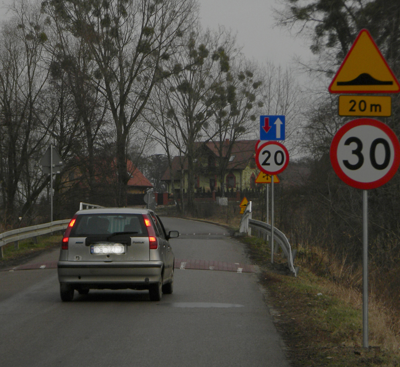 Zastosowane rozwiązanie na moście w Kozłowie Biskupim w postaci progów zwalniających spowodowało nie tylko dostosowanie się kierowców do znaków drogowych ograniczających prędkość ruchu pojazdów do 20 km/h, ale również ograniczyło znacznie ruch ciężkich samochodów.