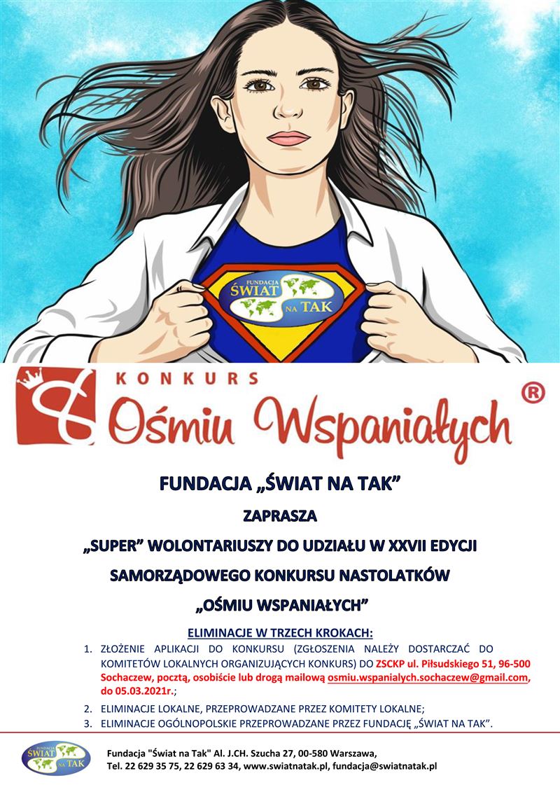 Lokalny Komitet Organizacyjny Samorządowego Konkursu Nastolatków ,,8 Wspaniałych” wraz ze Starostwem Powiatowym w Sochaczewie oraz samorządami gminnymi z powiatu sochaczewskiego zapraszają do zgłaszania wyróżniających się wolontariuszy do XV Sochaczewskiej Edycji Konkursu ,,8 Wspaniałych”.