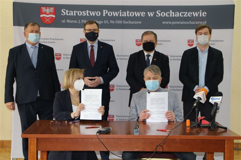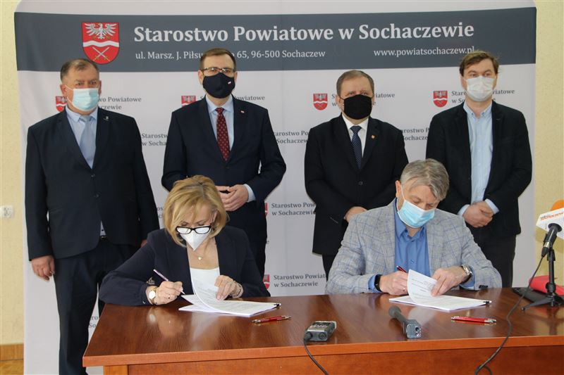 Inwestycja kosztować będzie ponad 5,7 mln zł, z czego 4 mln zł pochodzi z Rządowego Funduszu Inwestycji Lokalnych. Stąd przy podpisaniu umowy obecność przedstawiciela rządu, Macieja Małeckiego, wiceministra w Ministerstwie Aktywów Państwowych – Cieszę się, że kolejna wielomilionowa dotacja rządu trafiła na ziemię sochaczewską. Zabiegałem o te pieniądze, bo przebudowa mostu jest bardzo potrzebna i ułatwi życie kierowcom nie tylko z Sochaczewa. Bezzwrotne dotacje dla samorządów, jakie przygotowaliśmy w rządzie, pozwalają utrzymać bardzo ważne inwestycje w powiatach, miastach i gminach. Tylko w ostatnich miesiącach do samorządów powiatu sochaczewskiego trafiło już kilkadziesiąt milionów złotych. To szczególnie ważne dziś, w czasie wszechobecnej pandemii, bo takie inwestycje to także potężny zastrzyk finansowy dla naszych lokalnych firm, które będą realizować prace budowlane. To także pewność zatrudnienia dla wielu pracowników i pewność utrzymania dla wielu rodzin. A to jest dla mnie bardzo ważne – mówił minister Maciej Małecki, poseł na Sejm RP ziemi sochaczewskiej, którego zaangażowanie w pomoc przy zdobyciu środków na inwestycję okazało się nieocenione. W sali konferencyjnej Starostwa Powiatowego podpisy pod umową złożyli: Małgorzata Dębowska – dyrektor Powiatowego Zespołu Dróg, Piotr Beczek – dyrektor działu Wyposażenia Mostów i Napraw, prokurent oraz dyrektor, prokurent Arkadiusz Franków reprezentujący spółkę FREYSSINET. Towarzyszyli im też m.in. Tadeusz Głuchowski – wicestarosta, Andrzej Kierzkowski – przewodniczący Rady Powiatu w Sochaczewie oraz Teresa Pawelak – skarbnik Powiatu i Michał Orzeszek – sekretarz Powiatu.