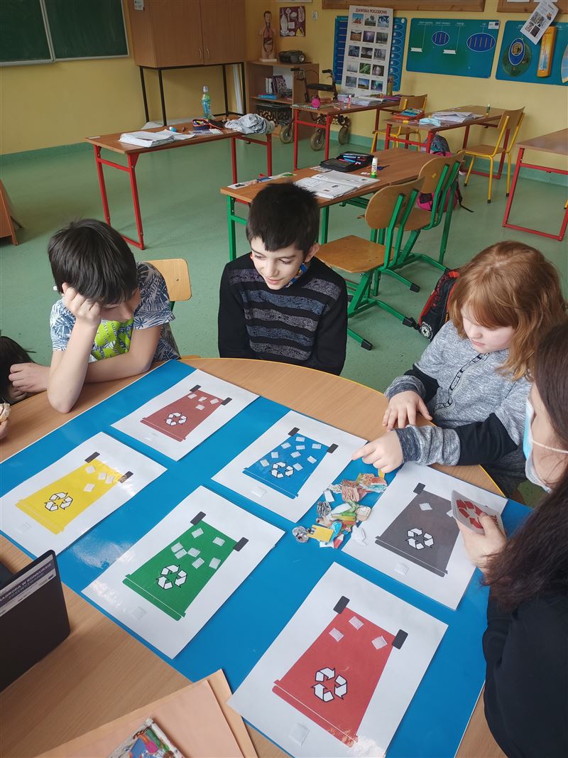 Podczas zajęć uczniowie przypomnieli sobie jakie są kolory pojemników, i co do nich wrzucamy. Dowiedzieli się co się dzieje ze śmieciami, które trafiają z naszych domów do specjalnych zakładów. Wiedzą już, jak z odpadów organicznych zrobić nawóz, na czym polega recykling papieru i jak pozyskuje się surowce wtórne. Uczniowie wiedzą, że dzięki odrobinie wyobraźni sami mogą nadać nowe życie starym przedmiotom.