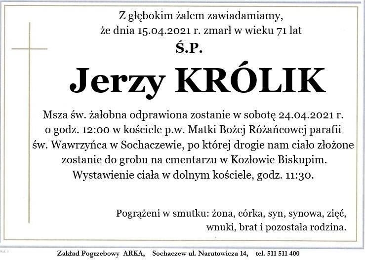 Ostatnie pożegnanie... 19-04-2021 13:31 A A A 15 kwietnia w wieku 71 lat zmarł Jerzy Królik - dyrektor Wydziału Rozwoju, Rolnictwa, Leśnictwa i Ochrony Środowiska w Starostwie Powiatowym w Sochaczewie. Ostatnie pożegnanie odbędzie się w najbliższą sobotę, 24 kwietnia… ZOBACZ GALERIE