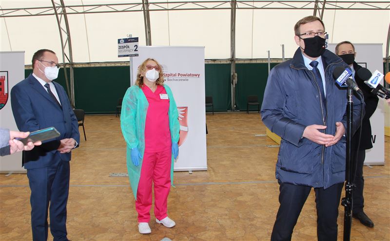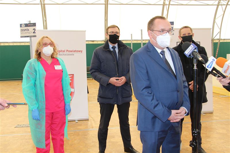 - Jak w wielu takich przypadkach, Sochaczew, powiat sochaczewski stanowią wzór współpracy z Rządem RP. Dziękuję za sprawną organizację burmistrzowi Piotrowi Osieckiemu z zespołem, w tym Annie Pawłowskiej wicedyrektor MOSiR, Joannie Kamińskiej naczelnik w Urzędzie Miasta, dyrektorowi szpitala Robertowi Skowronkowi z zespołem pielęgniarek i medyków oraz staroście Jolancie Gonta, która oprócz aktywności przy przygotowaniu Punktu Szczepień Powszechnych, od wielu dni jako pielęgniarka - wolontariusz pracuje przy szczepieniach. Mocno zachęcam wszystkich do rejestracji na szczepienia chroniące przed koronawirusem – mówił obecny podczas uroczystego otwarcia poseł Maciej Małecki, wiceminister w Ministerstwie Aktywów. – Narodowy Program Szczepień to egzamin z odpowiedzialności i sprawności działania naszego państwa. Od niego zależy jak szybko będziemy mogli wrócić do normalności – dodał.