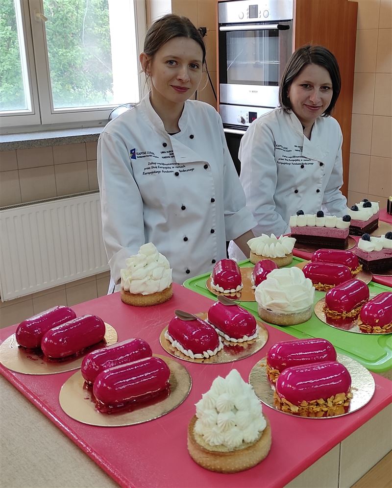 W miniony weekend mogliśmy zainaugurować cykl profesjonalnych i certyfikowanych kursów w ramach projektu dofinansowanego ze środków UE „Okno na karierę”. Nauczyciele mieli możliwość skorzystania ze szkolenia „Monoporcje”, zaś uczniowie realizowali kurs „Cukiernik II stopnia”.