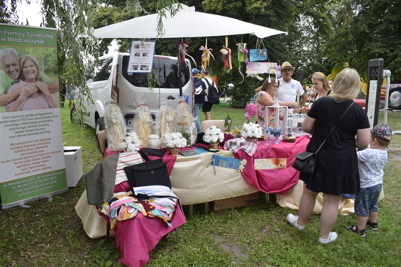 W minioną niedzielę, 25 lipca w Młodzieszynie odbył się „Piknik Rodzinny zdrowo i wesoło”, w którym i mieszkańcy Domu Pomocy Społecznej wzięli także udział. Dla każdego czekały ciekawe atrakcje, nie tylko dla dzieci, młodzieży, ale i osób starszych. Mogliśmy zobaczyć pokaz ratownictwa medycznego, jak i skorzystać z pomiaru ciśnienia i poziomu cukru. Posłuchać skocznej muzyki, granej na żywo przez zespół muzyczny i zjeść coś pysznego. Niespodzianek dla najmłodszych nie zabrakło, były: dmuchańce, balony, lody, malowanie twarzy, a nawet sam występ taneczny. I my tego dnia mogliśmy osobiście zaprezentować ręcznie wykonane prace naszych mieszkańców. Na okazałym stoisku można było zobaczyć i pozyskać: anioły, donice z drewna, lampy, bransoletki, las w szkle, bukiety kwiatów i wiele, wiele innych gadżetów wykonanych z pasją. W imieniu swoim i mieszkańców bardzo serdecznie dziękujemy organizatorom za zaproszenie i mile spędzony czas.