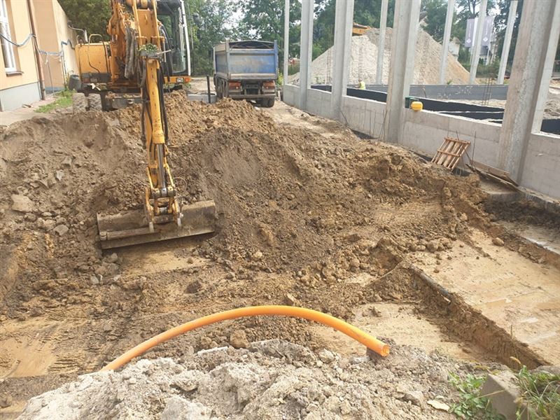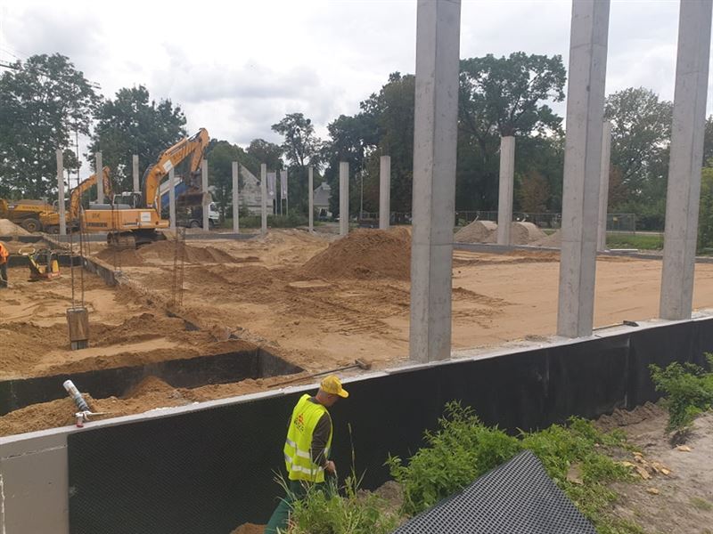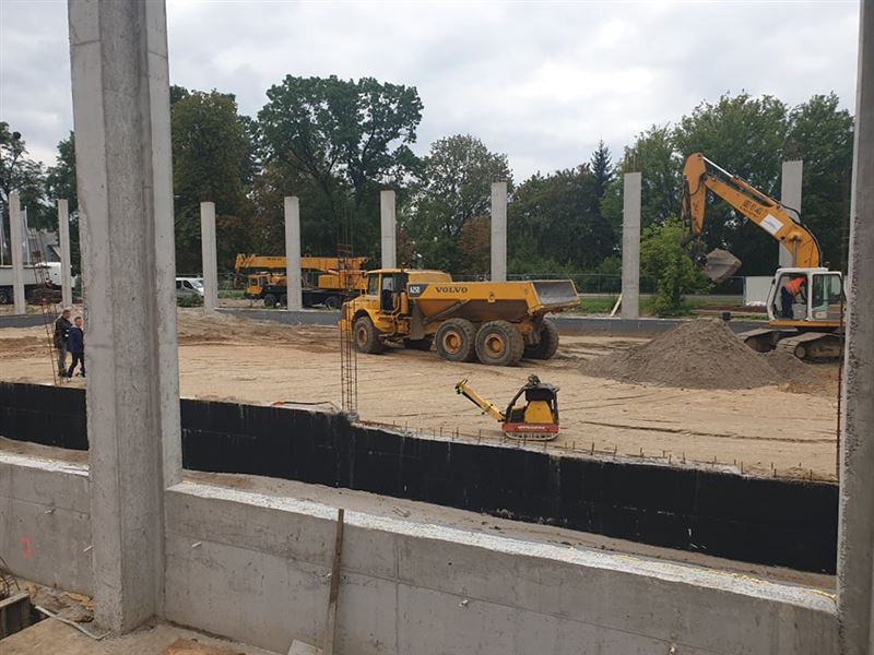 Budowa hali sportowej przy sochaczewskiej „Osiemdziesiątce” trwa w najlepsze. Aktualnie wykonano stabilizację posadzki pod wylewkę chudego betonu pod halę. Posadzka zostanie wylana w przyszłym tygodniu. Trwają prace izolacyjne ław fundamentowych i podwalin hali. Jak informuje Michał Felczak, kierownik budowy wykonane zostały fundamenty łącznika z halą gimnastyczną. W kolejnym tygodniu powstaną podwaliny na ławach fundamentowych łącznika. Wykonano instalację gazową w części łącznika hali z istniejącą kotłownią przyszkolną. – Zaczynamy montaż studni kanalizacji i odwodnienie terenu. W kolejnym etapie zaczniemy szalować i zbroic 95 cm wieniec łączący wszystkie słupy hali – wyjaśnia kierownik. Przypomnijmy, budowa hali sportowej wraz z łącznikiem i pomieszczeniami towarzyszącymi przy istniejącym budynku ZS CKP rozpoczęła się w czerwcu br. To największa obecnie, obok przebudowy mostu na rzece Bzura w Chodakowie, powiatowa inwestycja budowlana, współfinansowana ze środków Rządowego Funduszu Inwestycji Lokalnych. Wykonawcą zadania jest Przedsiębiorstwo Produkcyjno-Usługowe „HEGOR” Sp. z o.o. z Sochaczewa.