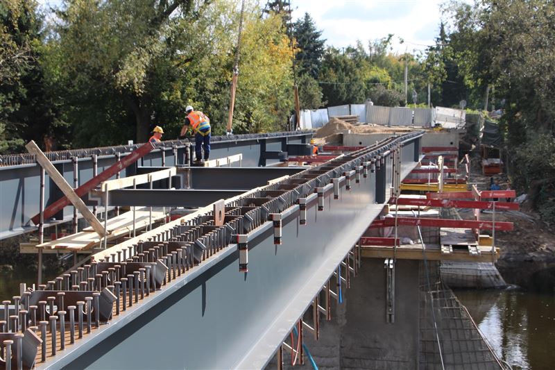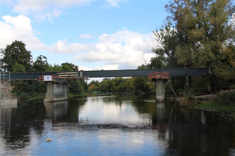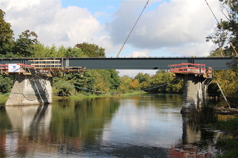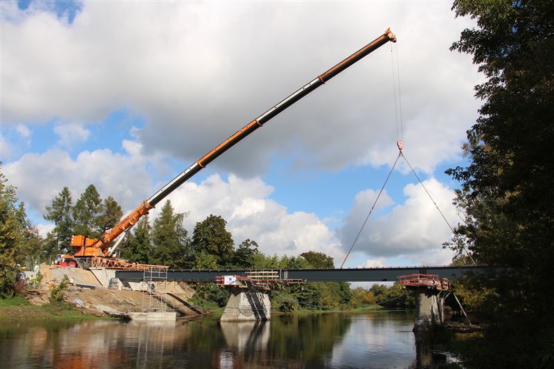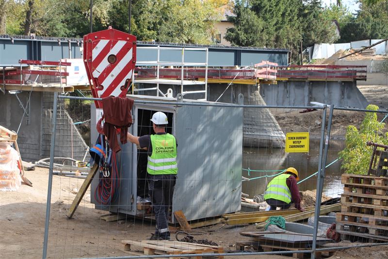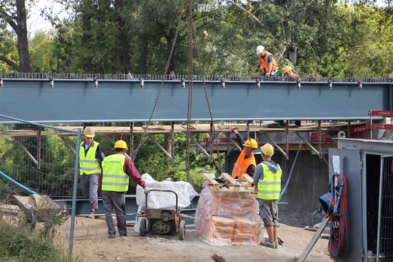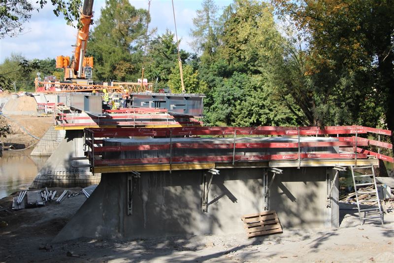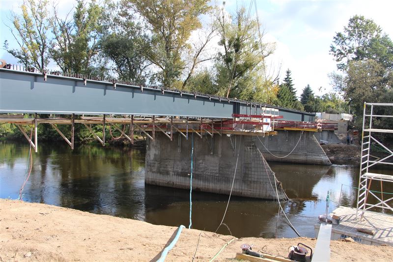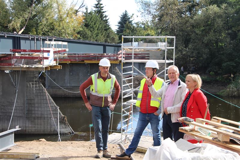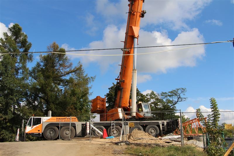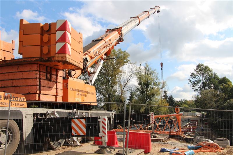 Inwestycja prowadzona przez sochaczewski samorząd powiatowy kosztować będzie ponad 5,7 mln zł i zrealizowana zostanie w całości z rządowych środków pozyskanych dzięki wsparciu posła Macieja Małeckiego. Połowa kwoty to środki z Rezerwy Subwencji Ogólnej na 2021 r., natomiast reszta pochodzi z Rządowego Funduszu Inwestycji Lokalnych. Wykonawca dokłada wszelkich starań, by realizacja zadania przebiegała według planu. Niestety, zwykle przy tak wielkiej inwestycji nie wszystko da się przewidzieć. Opóźnienia w dostawie konstrukcji stalowych nieznacznie wpłynęły na termin zakończenia przebudowy chodakowskiego mostu. Jeśli tylko warunki pogodowe pozwolą i nie wystąpią inne nieprzewidziane okoliczności to w grudniu br. powinnyśmy cieszyć się z przebudowanego obiektu. Rozpoczęto już posadowienie stalowych konstrukcji do wykonania szkieletu mostu. We wtorek, 14 września prace te, na placu budowy obserwował m.in. Bogumił Czubacki, członek Zarządu Powiatu, mieszkaniec Chodakowa, który bardzo zabiegał o tę inwestycję. Przyznał, że był zaniepokojony różnymi pojawiającymi się w mediach komentarzami. Na miejscu mógł osobiście przekonać się, że wykonawca prowadzi prace bardzo solidnie i profesjonalnie. W towarzystwie Małgorzaty Dębowskiej, dyrektor Powiatowego Zarządu Dróg w Sochaczewie przyglądał się procesowi montowania kilkutonowych dźwigarów. Postępy w gruntownej przebudowie obiektu mostowego w Chodakowie widać już jak na dłoni.